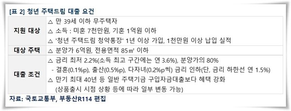 부동산R114에 따르면 청년 주택드림 대출을 활용하면 시중 은행권 주담대보다 약 월 85만원 저렴할 것이란 분석이 나왔다고 합니다.